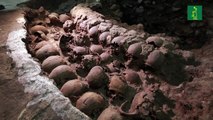 Arqueólogos descubrieron esta semana un "tzompantli", un altar azteca en forma de plataforma con decenas de cráneos alineados, supuestamente de personas decapitadas en ceremonias.