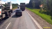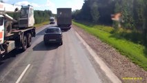 Au volant d'une Lada 110, un automobiliste entreprend de doubler un poids lourd sur une route située près de Novossibirsk, en Russie, mais le dépassement n'est pas réalisé assez rapidement. Voyant s'approcher un camion qui roule en sens inverse, le conducteur panique et perd le contrôle de sa voiture avant de percuter l'imposant véhicule. Sous la violence du choc, la Lada 110 est ensuite projetée, telle une toupie, contre un autre camion qui roule derrière elle. Malgré cet accident très spectaculaire, l'automobiliste est toujours vivant.