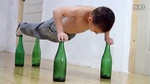 Xem cậu bé chống đẩy siêu đẳng trên 4 chai bia