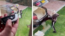 Il troll sa sœur avec le coffre de sa voiture