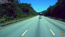 Car cuts off another and gets sucked up by a tornado.