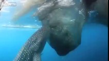 Freaky whale shark sucking fish