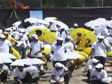 An impressive video has emerged from China of 2,880 high school students breaking an umbrella carrying record.
