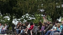 Vol d'un aigle entre 2 personnes en slow motion... Dingue de précision!
