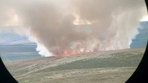 A large fire that broke out on moorland has sent smoke shooting hundreds of feet into the air