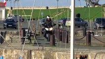 Un journaliste teste une moto dans un port... mais trop près de l'eau !