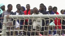 Crowds of migrants push against barriers and police at a crowded registration centre in Serbia, where thousands are arriving every day according to the U.N. refugee agency.