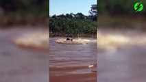 Crazy Jagar dives into River to attack a Caiman!!