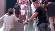 Il caresse la main des gens sur un escalator, et leurs réactions sont justes énormes !