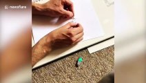 Ambidextrous artist creates quirky alien drawing with both hands