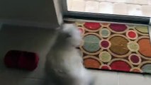 Christy, un chien de race West Highland Terrie, vient d'arriver dans sa nouvelle maison en Floride et découvre qu'il y a une piscine. Derrière la porte-fenêtre, le chien est tout excité et n'a qu'une envie, plonger dans la piscine. Je crois qu'on peut dire qu'il aime l'eau !