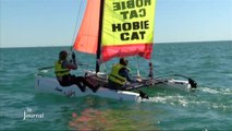 Navigation en solitaire sur un cata, passage du niveau 1 premiers bords de la FFV sur un catamaran SL à la base nautique de Sciez sur le lac Léman.