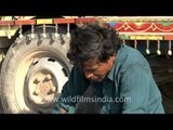 A salt worker couple having lunch, Gujarat