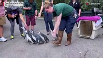 Um grupo de pinguins muito espertinhos aproveitaram que o seu tratador estava distraído e decidiram se por em fuga.