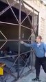 Il porte une énorme poutre en acier sur l'épaule sans forcer