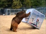 Grizzly bear pushes over woman trapped inside cube