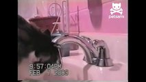 A funny slow motion video of a cat called Sid who loves to take a shower and even shakes like a dog to dry off.