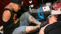 Un tatoueur sans bras tatoue avec ses pieds. Quel talent...