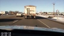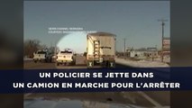 Un policier saute sur un camion pour éviter un accident