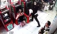 New 2016 young guy in the store stealing slippers, a security guard noticed him