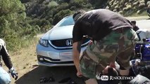 Acidente incrivel de um motociclista contra um carro!