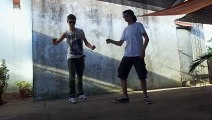 Two teen boys performing best synchronized dance outdoor, Execution of steps are well fitted with music, I am sure every one loving it.