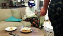 Funny GrandMa tries Virtual Reality Helmet for the first time and screams