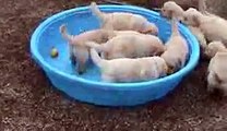 5 week old golden retriever puppies really mad when someone doesnt fill their pool!