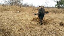 Cute and curious hyena cubs approach photographer