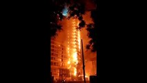 Les images impressionnantes d'une gigantesque tour incendiée pendant les émeutes au Chili