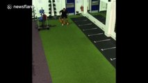 The footage, shot last week, shows the skier flying after he was propelled by two 20 foot long elastics.
