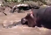 The 15ft reptile was carrying the head of a zebra in its jaws through the waters of Kruger National Park, South Africa, when it was spotted by a hippo relaxing with ...