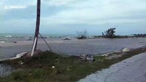 The storm rolled off the coast and into the Atlantic before sunrise, leaving behind clear skies and gusty winds.