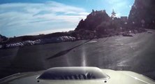 Deux motards font une course de folie sur une route de montagne