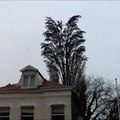 Hundreds of birds fly out of tree simultaneously