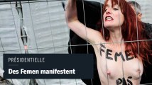 Des FEMEN ont manifesté seins nus ont pour célébrer le départ du pape Benoit XVI dans la nef de Notre-Dame de Paris