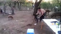 Adam, Annesinin Yanında Yavru Domuzu Yakalayınca..
