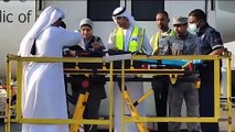 An Emirati official stretched out his ghutra, the traditional headdress, to protect a young patient from sunlight as the toddler was shifted from the flight to the ambulance.