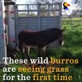 Rescued Burros See Grass For The First Time
