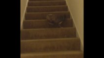 Dog Chases His Tail Down The Stairs