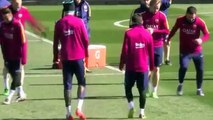 Neymar y Luis Suárez 'Castigan' a Mascherano en el entrenamiento