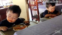 CNN Distraction Watch twins fall asleep eating spaghetti