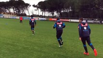 Les joueurs de Naples font un concours de plongeons à l'entraînement
