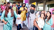 Footage of Kim Kardashian taking selfies with fans while she gets mobbed by the paparazzi in California, USA.