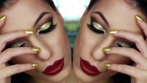 Latest Gold Glitter Cut Crease Smokey Eye - New Years Eve Makeup Tutorial I Glitter cut crease makeup tutorial I