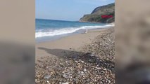 Ağzına olta iğnesi takılan caretta caretta yaralandı