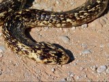 This species is medium to large in length, a heavy-bodied snake with long cervical ribs capable of expansion to form a hood. The body is compressed dorsoventrally and subcylindrical posteriorly. This species averages about 1 m (3.3 ft)[3] in length and rarely reaches lengths over 1.5 m (4.9 ft).[4] The head is elliptical, depressed, and slightly distinct from the neck, with a short, rounded snout and large nostrils. The eyes are medium in size with round pupils. Dorsal scales are smooth and strongly oblique, with the outer two or three scale rows larger than the remainder.[3] Juveniles tend to be pale, with a faded appearance. They have noticeable dark and light cross-bands of approximately equal width around the body. Adults of this species are completely light to chocolate brown or yellowish, some retain traces of juvenile banding,