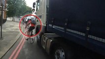 Angleterre : un cycliste risque l'accident à cause d'un camion. Mais le conducteur ne se laisse pas faire !