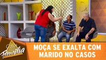 Moça se exalta com marido no Casos