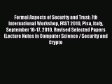 Read Book Online Now http://www.ezbooks.site/?book=3642197507Read Formal Aspects of Security and Trust: 7th International Workshop FAST 2010 Pisa Italy